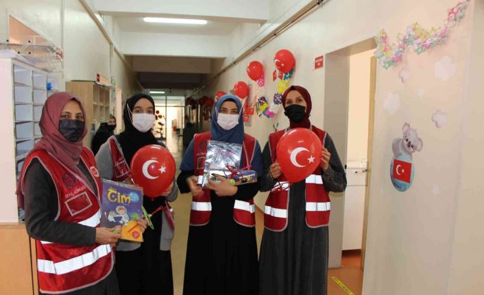 Amasya’da rahatsızlıkları nedeniyle 23 Nisan etkinliklerine katılamayacak çocuklar için tedavi gördükleri hastanenin çocuk servisinde koridorlar bayrak ve balonlarla süslendi. Üniversite öğrencileri ve Amasya Müftülüğü görevlileri hasta çocuklara balon, çikolata ve oyuncaklardan dağıttı.