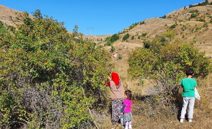 Eşiyle birlikte kırsalda kuşburnu toplayan Ergin, kuşburnu toplamanın oldukça zor olduğunu ve incelikleri olduğunu belirterek, “İlmini bilmezseniz zor olur. Gelberi dediğimiz çubukla dalları kendimize çekip öyle topluyoruz. Yoksa dikenleri vücudunuzu yaralıyor. Ben Bayburt’luyum bilmezdim bu işleri. Buraya gelin gelince öğrendim” diye konuştu.