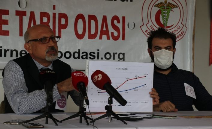Edirne Tabipler Odası Başkanı Dr. Gürcan Altun, pandemi süreci ve genel durum hakkında düzenlediği basın toplantısında, “1 Mart 2021 tarihinde başlayan ve normalleşme olarak adlandırılan süreçte, Edirne’de 100 bin nüfusa karşılık gelen vaka sayılarında oran 107’den 219’a çıkmış, iki katı artış olmuş. Bakın Türkiye genelinde 71’den 144’e ulaşmış 2 katından fazla. Bu normalleşmenin zamanında ve doğru yapılmadığını gösteriyor bize” dedi.