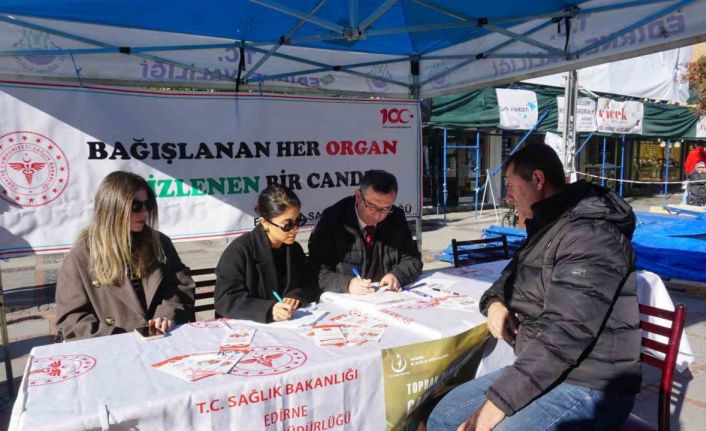 Her yıl 3-9 Kasım tarihleri arası ’Organ Bağış Haftası’ olarak kutlanıyor. Bu çerçevede etkinlik düzenleyen Edirne İl Sağlık Müdürlüğü ekipleri, Saraçlar Caddesi’nde açtığı stantta vatandaşları bilgilendirdi.