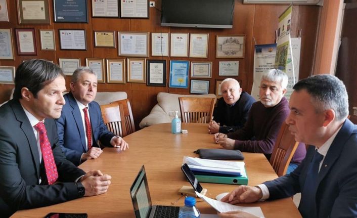 Rektör Yardımcısı Prof. Dr. Murat Türkyılmaz ve beraberindeki heyet, Trakya Üniversitesi ve Bulgaristanlı hekimleri bir araya getiren toplantı öncesinde Kırcaali Belediye Başkanı Hasan Azis ile başkanlık makamında bir araya geldi.