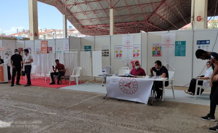 Burdur’da düzenlenen fuarda İl Sağlık Müdürlüğü tarafından kurulan aşı istasyonunda e-Nabız sistemi üzerinde aşı sırası gelen vatandaşlar randevuya bakılmaksızın aşılandı.