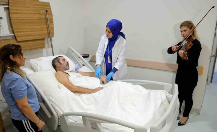 Adana Karşıyaka Devlet Hastanesi’nde bulunan ‘Palyatif Bakım Servisi’nde tedavi gören hastalara keman çalınarak müzik dinletisi sunuluyor. Serviste, hasta yakınları içinde Kur’an-ı Kerim okunup manevi destek hizmeti veriliyor.
