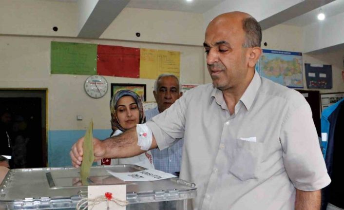 Diyarbakır Selahaddin Eyyubi Devlet Hastanesinde kansızlık şikayetiyle dahiliye bölümünde yatan Mehmet Gürkan, demokratik hakkını kullanmak için Yenişehir ilçesindeki Turgut Özal İlkokulunda Evde Sağlık Hizmeti ekiplerinin yardımıyla oyunu kullandı.