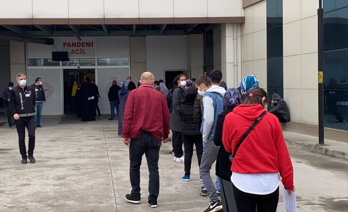Hastane önünde Korona testi kuyruğu