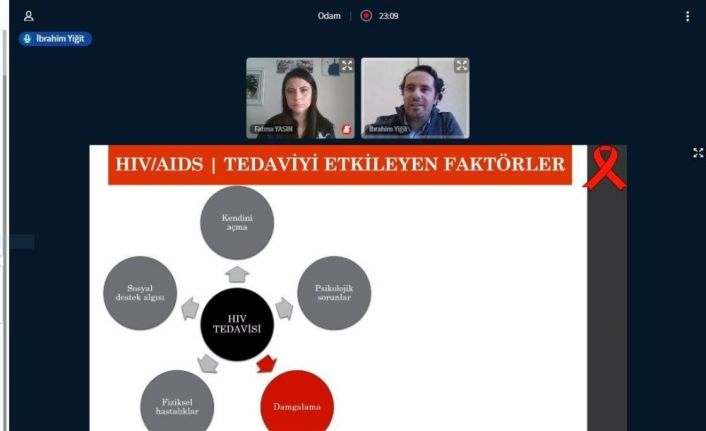 Yiğit, HIV/AIDS belirtilerinin grip benzeri belirtilerle başladığını (ateş, boğaz ağrısı, deri döküntüsü, baş ağrısı, bulantı, kusma ve ishal) katılımcılarla paylaşan konuşmacı, HIV enfeksiyonu tedavi edilmezse, 10 yıl içerisinde bağışıklık sisteminin oldukça zayıfladığını söyledi. AIDS’li bir kişide; yüksek gece terlemeleri, kronik ishal, dilde veya ağızda lekeler, kuru öksürük, yorgunluk, kilo kaybı gibi birçok olguya rastlandığını açıklayan Dr. Yiğit, HIV tedavisinin ulusal sağlık sigortası kapsamında ücretsiz olarak gerçekleştirildiğini vurguladı.