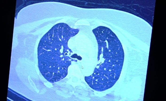 Akciğer tomografisinde oluşan değişim ile ilgili bilgi veren Prof. Dr. Şevket Özkaya, "Ekranda 55 yaşında bir kadın hastamızın filmini görüyorsunuz. Bu kadın hastamız acil servisimize ateş şikâyetiyle geldi ve korona virüsünden şüphe ettik. Testini yaptığımızda ise testin sonucu pozitif geldi. Tomografi çektiğimiz zaman akciğerlerinde henüz ciddi bir tutulum görünmezken hastamız 55 yaşında olduğu için her an ilerleyebilir korkusuyla Sağlık Bakanlığımızın önerdiği ilaçları ve reçeteyi hastanemizden kendisine verdik. Hasta kendini evde karantinaya aldı fakat sonradan öğrendik ki tereddüt ettiği için ilaçlarını kullanmayarak kendini evde tedavisiz bırakmış. Yaklaşık bir hafta sonra aynı hasta acil servisimize bu sefer solunum yetmezliği şikâyetiyle geldi. Solunum yetmezliği gelişince hastanın akciğer tomografisinde ‘buzlu cam’ dediğimiz ve daha ileri konsolide alanların oluştuğunu gördük. Yaygın akciğer harabiyeti dediğimiz bir tablo oluşmuştu. Bu durumda hastada solunum yetmezliği olduğu için yoğun bakıma almak zorunda kaldık" dedi.