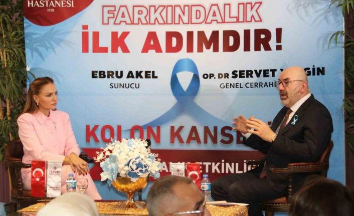 Genel Cerrahi Uzmanı Op. Dr. Servet Yetgin konuşmacı olduğu ve Sunucu Ebru Akel’in moderatörlüğünde gerçekleştirilen söyleşide konuşan Yetgin, “Kolon kanseriyle ilgili toplumda, görülme sıklığı konusunda ciddi bir artış var. Kanserin görülme yaşının aşağılara doğru inmesinde de büyük bir artış var. Bu yüzden bütün bir ay boyunca toplumun kolon kanserine olan duyarlılığını bilincini arttırmaya çalışacağız. Bu kanser hem önlenebilir, hem de tedavi edilebilir bir kanserdir. Bu açıdan eğer çaba sarf edersek, önleyebiliriz. Yeni hastalar olmasını engelleyebiliriz. Oluşan teşhisini koyduğumuz hastaları da erken evrede tedavi altına almış oluruz. Kolon kanseri erken evrede teşhis edildiğinde yüzde 95’in üzerinde tedavi edilmesi mümkündür. Çoğu zaman erken evredeki hastalarda, bağırsağın kesilip dikilmesine gerek kalmadan kolonoskopi sırasında bile, müdahale edilip tedavi edilebilecek bir hastalıktır. Bunu özellikle belirtmek istiyorum” dedi.
