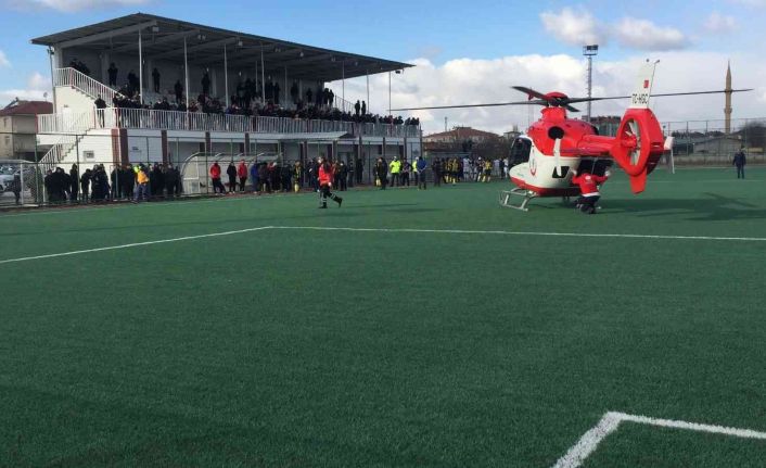 Konya’nın Kulu ilçesinde, kalp krizi geçiren hastayı almaya gelen helikopter ambulans, oynanan Bölgesel Amatör Ligi maçı sırasında sahaya indi. Hastayı alan helikopter ambulans havalandıktan sonra ara verilen maç kaldığı yerden devam etti.