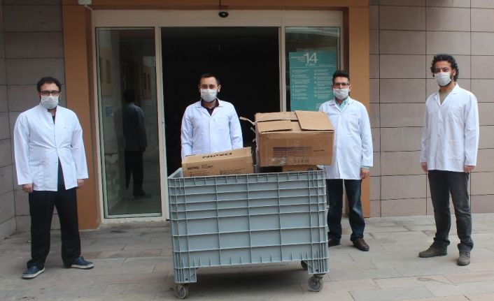 Alaşehir Eczacılar Odası Başkanı Ali Doğan, yönetim kurulu üyeleri Metehan Özcan ve Mehmet Türkmen koordinesinde toplanan maskeleri teslim alan Başhekim Opr. Dr. Kadir Gem, eczacılara teşekkür etti.