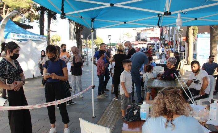 Alaşehir Belediyesi bu yıl 3’üncüsü düzenlenen Alaşehir Üzüm Festivali kapsamında pandeminin sona ermesi ve aşılamaya teşvik etmek için ilk doz aşısını olanlara festival boyunca her gün çekilen kurayla 3 kişiye ödül verileceğini açıklamasının ardından vatandaşlar festival alanında kurulan randevusuz aşı çadırına adeta akın etti. Festivalin her akşamı ilk doz aşısını olanlar arasında çekilen kurayla akıllı telefon, bisiklet ve akıllı saat hediye ediliyor.