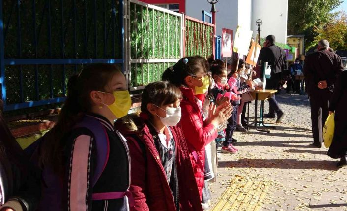 Ardahan’da bir okulda öğrenciler, artan Covid-19 vaka sayıları nedeniyle tedbirlere dikkat çekmek amacıyla ellerinde dövizlerle etkinlik düzenleyerek, vatandaşlara maske dağıttı.