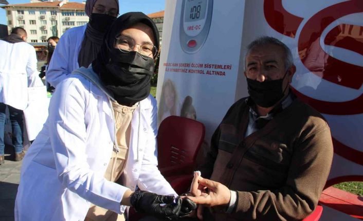 Sivas’ta bir grup Tıp öğrencisi kent meydanında vatandaşların şeker ölçümünü yaparak elde edilen verilerle bilgilendirme yaptı.