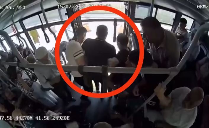 Otobüste fenalaşan yolcu hastaneye yetiştirildi, o anlar kameraya yansıdı
