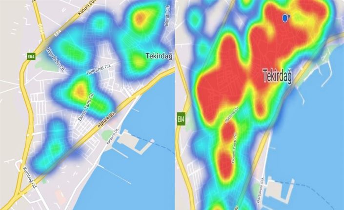Korona virüs vaka oranlarında İstanbul ile yarışan Tekirdağ’da korona virüs yoğunluk haritası yeşil ve mavi tonlara dönüştü.