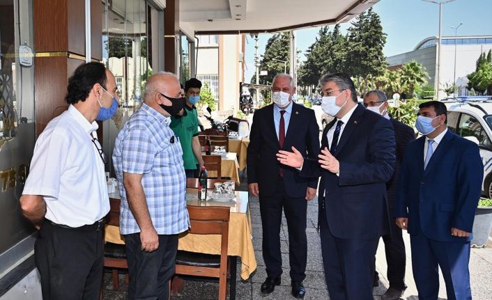 Sağlık Bakanlığı tarafından haftalık olarak açıklanan korona virüs haritasında 100 binde 7,66 vaka sayısı ile Türkiye’de 2. olan Osmaniye’de denetimler aralıksız sürüyor. ‘Dinamik Denetim Modeli’ kapsamında Belediye Başkan Yardımcısı Mehmet Hulusi Akkuş, İl Sağlık Müdürü Dr. Hasan Öznavruz ve 112 Acil Çağrı Merkezi Müdürü Guddusi Arık ile beraber Şair Abay Kunanbay Caddesi boyunca gerçekleştirilen denetimlere Vali Dr. Erdinç Yılmaz, esnafları tek tek ziyaret etti. Osmaniye olarak korona virüste çok iyi durumda olduklarını hatırlatan Vali Yılmaz, herkesin kurallara uyarak aşı yaptırmasını istedi.