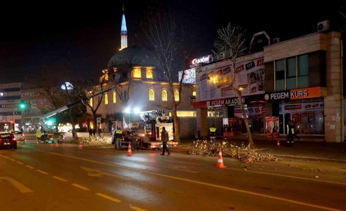 Sakarya Büyükşehir Belediyesi Park ve Bahçeler Dairesi Başkanlığı 15 Temmuz Caddesi’nde gecenin geç saatlerine kadar çalışmalarını sürdürdü. Daha önceki çalışma programlarında caddenin simgelerinden palmiye ağaçlarına budama işlemi yapıp, kış mevsimi dolayısıyla ağaçları koruma altına alan ekipler, kış mevsiminin yaklaşmasıyla beraber yaya ve araç güvenliği düşünülerek olumsuzların önüne geçmek için cadde üzerinde bulunan çınar ağaçları budama işlemine tabi tutuldu.