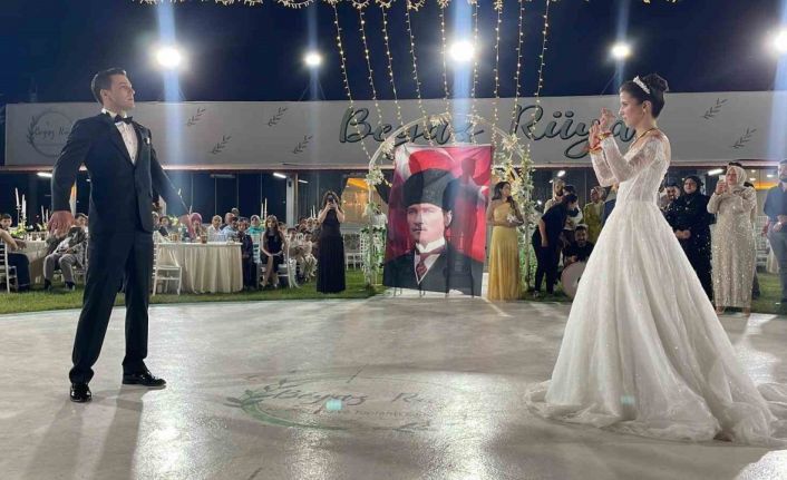 Sakarya’nın Pamukova ilçesinde 30 Ağustos Zafer Bayramı’nda dünyaevine giren çift, düğünlerinde sergiledikleri zeybek gösterisi ve açtıkları Atatürk posteri ile davetlilere unutulmaz anlar yaşattı.