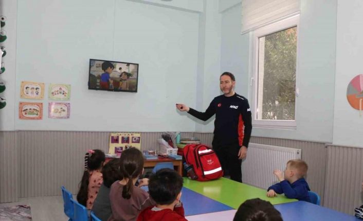 Sakarya AFAD ekipleri, minik ve gençlere ‘Afet Farkındalık’ eğitiminde, afet öncesi-sırası-sonrasında doğru davranışlar, afet ve acil durum çantasının içeriği, çök-kapan-tutun prensibi ve tahliye tatbikatlarını detaylı bir şekilde anlattı.