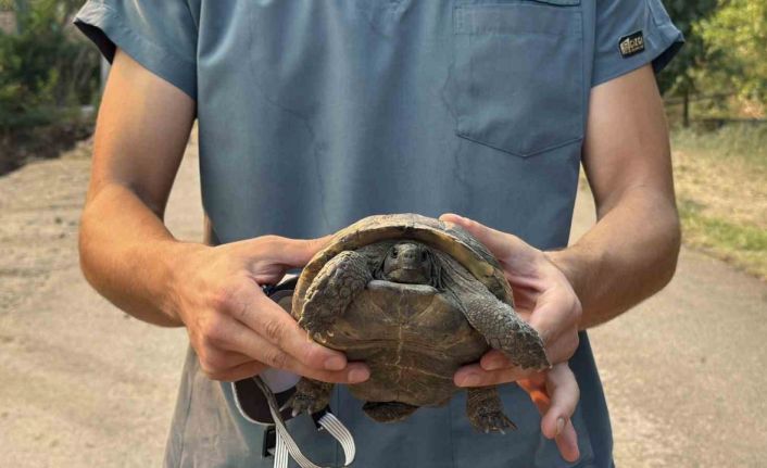 Karaçam ile Nuruosmaniye Mahalleleri arasındaki ormanlık alanda saat 13.00 sıralarında çıkan yangına havadan ve karadan yoğun şekilde müdahale sürerken, yangından uzaklaşmaya çalışan bir kaplumbağa veteriner hekimlerin dikkatini çekti. Hızla alevlerin yayıldığı bölgeden koşarak uzaklaşan kaplumbağa, güvenli bir yere alındı.