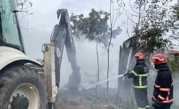 Sakarya’nın Adapazarı ilçesinde alevlere teslim olan samanlık kül olurken geriye tahta yığınları kaldı.