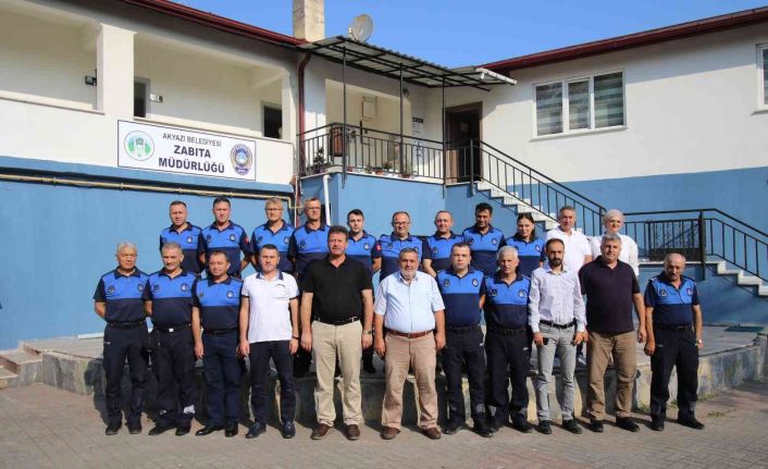 Akyazı Belediye Başkanı Bilal Soykan Zabıta Teşkilatı’nın 196’ncı kuruluş yıl dönümü ve Zabıta Haftası sebebi ile zabıta personelleri ile kahvaltıda bir araya geldi. Gerçekleştirilen toplantıya Başkan Soykan’ın yanı sıra Belediye Başkan Yardımcıları Mehmet Çakmak, Mehmet Öztürk, Ali Özer, Aslan Yılmaz, Zabıta Müdürü Özcan Özlü ve zabıta personeli katıldı. Halkın sağlığı ve güvenliği için gece gündüz demeden, 7 gün 24 saat çalışan tüm Zabıta teşkilatının haftasını kutlayan Belediye Başkanı Bilal Soykan, çalışmalarından dolayı kendilerine teşekkür etti.