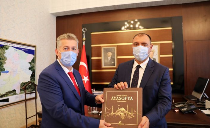 Sakarya Valisi Çetin Oktay Kaldırım’ı makamında ziyaret eden Basın İlan Kurumu Sakarya Şube Müdürü İbrahim Çorbacı, kurumun çalışmaları hakkında bilgiler vererek, ‘Basının Gözünden Ayasofya’ isimli kitabı hediye takdim etti. Medyanın içerisinde bulunduğu durumun da konuşulduğu ziyaretten duyduğu memnuniyeti dile getiren Vali Çetin Oktay Kaldırım, Basın İlan Kurumu’nun çok önemli işlev gördüğünü belirtti.