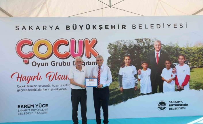 Sakarya Büyükşehir Belediye Başkanı Ekrem Yüce 81 mahalleye, düzenlenen tören sonrasında yeni çocuk oyun gruplarını teslim etti.