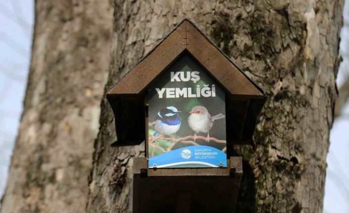 Sakarya Büyükşehir Belediyesi tarafından şehrin park ve meydanlarına yerleştirilen kuş yemlikleri, yiyecek bulmakta zorlanan kuşlar için beslenme olanağı sağlıyor.