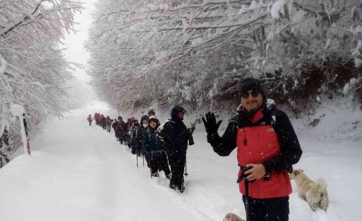 Sakarya’nın Kocaali ilçesinde 30 kişilik doğa tutkunu, bin rakımlı Çamdağı bölgesinde yaklaşık 12 kilometrelik kar yürüyüşü gerçekleştirdi.