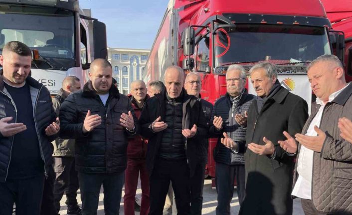 Deprem bölgesine giden yardım tırları dualarla uğurlandı