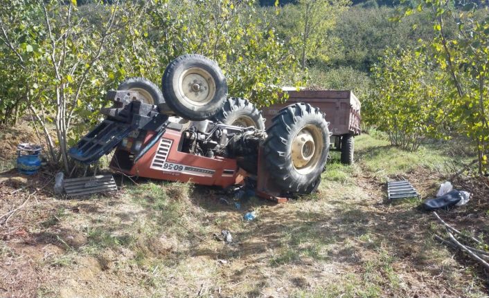 Sakarya’nın Kaynarca ilçesinde fındık bahçesinde kontrolden çıkan traktör devrildi. Kazada traktör sürücüsü yaralandı.