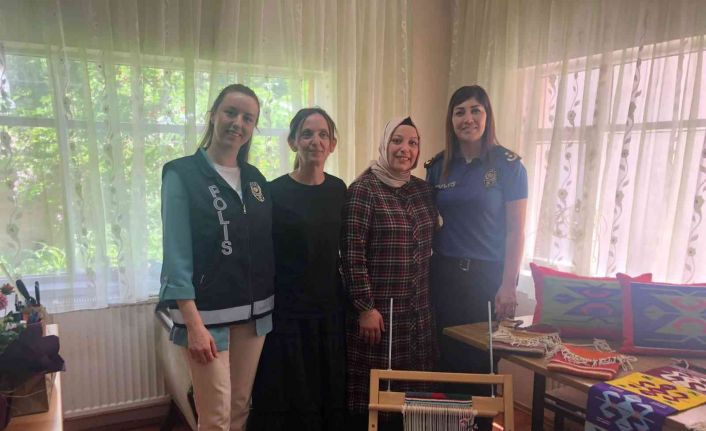 Sapanca İlçe Emniyet Müdürlüğü tarafından dikiş ve kilim dokuma kursunda eğitim gören kadın kursiyerlere, Kadın Acil Destek Uygulamasını (KADES) tanıtıldı.