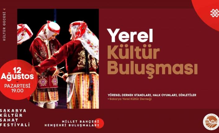 Sakarya Büyükşehir Belediyesi tarafından Millet Bahçesi’nde düzenlenen hemşehri buluşmaları, 12 Ağustos Pazartesi günü Yerel Kültür Buluşması ile sona erecek. Yöresel dernek stantlarının gün boyu açık olacağı hemşehri buluşmaları akşam 19.00’da halk oyunları ve konserlerle devam edecek.
