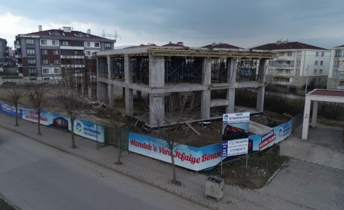 Hendek’te kısa süre önce temeli atılan itfaiye hizmet binasında çalışmalar tüm hızıyla devam ediyor. 2 bin 600 metrekarelik alanda yükselen proje 8 araçlık garajı ve tüm gereklilikleriyle 91 mahalleye hizmet sunacak.