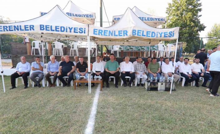 Erenler Muhtarlar Derneği tarafından bu yıl merhum Erenler Belediye Başkanı Fevzi Kılıç adına düzenlenen 18. Geleneksel Yazılı Köyü Futbol Turnuvası başladı. Açılış programına protokol üyeleri ve vatandaşlar yoğun ilgi gösterdi. Açılış konuşması gerçekleştirerek katılımcıları selamlayan Erenler Muhtarlar Derneği Başkanı Şaban Süleyman, “Öncelikle bu yıl 18’incisini düzenlediğimiz Yazılı Köyü Futbol Turnuvasına adını verdiğimiz merhum Belediye Başkanımız, arkadaşımız, dostumuz Fevzi Kılıç’ı rahmetle anıyorum. Bugün açılışta bizleri yalnız bırakmayan tüm başkanlarımıza, müdürlerimize, muhtarlarımıza ve hemşerilerimize teşekkür ediyorum” dedi.