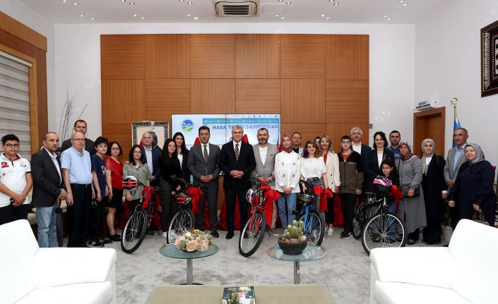 Sakarya Büyükşehir Belediye Başkanı Ekrem Yüce, 19 Mayıs Atatürk’ü Anma Gençlik ve Spor Bayramı için gerçekleştirilen ‘Bisiklet Dostu Şehir Sakarya’ resim yarışmasında dereceye giren ilk 5 öğrenciye hediye bisikletlerini makamında takdim etti. Sakarya Valiliği ve İl Milli Eğitim Müdürlüğü ile birlikte düzenlenen yarışmada dereceye girerek bisiklet ödülünü alan öğrenciler, Yüce’ye teşekkür etti.