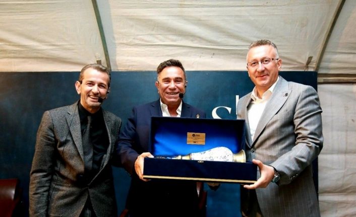 Sohbetin ardından Sabri Ugan’a teşekkür eden Başkan Mutlu Işıksu ise, “İşinde çok başarılı kıymetli hemşehrimiz Sabri Ugan’a bizi kırmayarak geldiği için teşekkür ediyoruz” diyerek günün anısına hediye takdim etti.