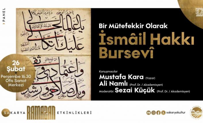 Sakarya Büyükşehir Belediyesi, Ramazan Kültür Sanat Etkinlikleri kapsamında yarın İsmail Hakkı Bursevi’yi anma programına ev sahipliği yapacak. Ofis Sanat Merkezi’nde (OSM) düzenlenecek etkinlikte hat sergisi ve akademik bir panel gerçekleştirilecek.