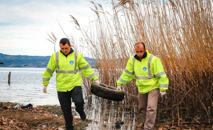 Sakarya Büyükşehir Belediyesi Su ve Kanalizasyon İdaresi (SASKİ), Sakarya ve Kocaeli’nin en önemli içme suyu kaynağı Sapanca Gölü’nde temizlik çalışması yürütüyor. Bu çerçevede belediye ekipleri, su seviyesi gerileyen gölün kıyı kesimindeki lastik, plastik, cam ve metal atıkları topladı.