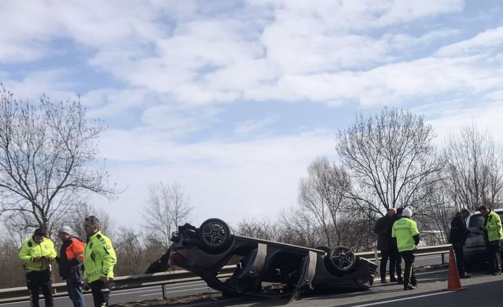 TEM Otoyolu Sakarya geçişinde tıra çarpan otomobil takla attı. Otomobil sürücüsünün hafif yaralandığı kazada otoyol Ankara istikametinde kısa süreli yoğunluk oluştu.