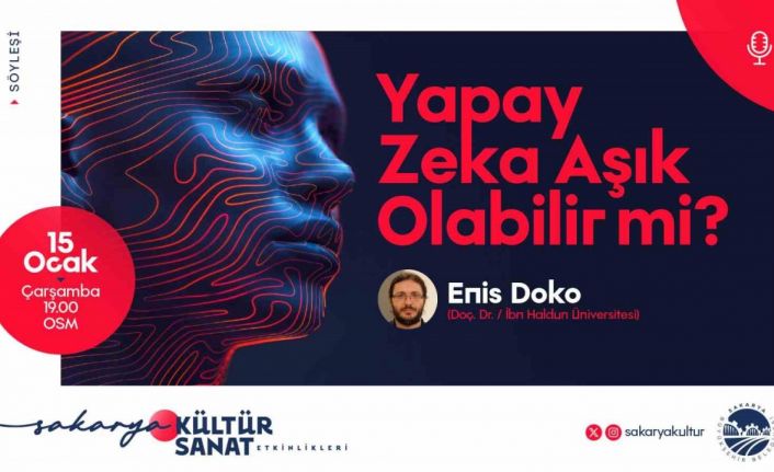 Sakarya Büyükşehir Belediyesi kültür etkinlikleri çerçevesinde OSM’de Doç. Dr. Enis Doko’nun katılımıyla gerçekleştirilecek söyleşide ’Yapay Zeka Aşık Olabilir mi?’ konusu konuşulacak. Söyleşi 15 Ocak Çarşamba günü saat 19.00’da yapılacak.