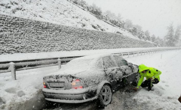 Sakarya’da sabah saatlerine kadar etkili olan kar yağışı sebebiyle yolda kalan vatandaşların yardımına polis ekipleri koştu.