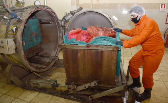 Aralarında virüs testinde ve hastaların tedavisinde kullanılan tıbbi malzemelerin de bulunduğu poşetlenmiş atıklar, özel tedbirlerle toplanarak Samsun Büyükşehir Belediyesi Katı Atık Düzenli Depolama Sahası içindeki Tıbbi Atık Sterilizasyon Tesisine getiriliyor. Radyoaktif atık kontrolünden sonra yüksek basınçlı makinelerde mikroplardan arındırılan atıklar, çeşitli aşamalardan geçirilerek zararsız evsel atığa dönüştürülüyor. Tesiste, 2019 yılında bin 812 ton tıbbi atık işlenirken, virüsün etkisini hissettirdiği bu yılın mart ayında ise 49 tonu karantina yurtları ve pandemi hastaneleri olmak üzere toplam 150 ton tıbbi atığın bertaraf edildiği açıklandı.