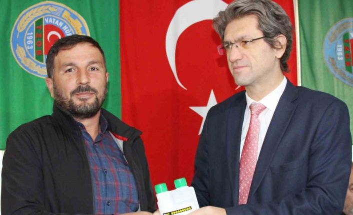 19 Mayıs Ziraat Odası toplantı salonunda ilaç dağıtım programı düzenlendi. Toplantıda konuşan 19 Mayıs Ziraat Odası Başkanı Bayram Konus, “Ziraat odamızın kahverengi kokarca ile kışlak mücadelesi kapsamında 23 mahalle muhtarımıza ziraat odamızın mali imkânlarıyla ilaç dağıttık. Muhtarlarımızın mahallelerinde belirleyeceği 10 haneyi ve kapalı alanlarının ilaçlanması için Kaymakamımız İbrahim Civelek, Manisa Kaymakam Adayı Latif Koralp, Belediye Başkanımız Osman Topaloğlu, İlçe Tarım ve Orman Müdürümüz Galip Baykal, Ziraat Odası Meclis ve Yönetim Kurulu Üyeleri, Mahalle Tarım Temsilcileri ile birlikte 260 hanemizin ilaçlanması için böcek ilacını muhtarlarımıza teslim ettik. Bu mücadelede muhakkak sonuç elde edeceğiz. İl ve ilçe Tarım ve Orman Müdürlükleri ile Ziraat Odamız eğitim çalışmaları yapılıyor. Kahverengi Kokarca ile mücadelede başarılı olmak zorundayız. Burada İlçe Tarım ve Orman Müdürlüğümüz, hem Ziraat Odamız ve üreticiler ellerinden gelen mücadeleyi el birliği ile yapıyor. Zaten olması gereken de bu. Çünkü kahverengi kokarca ile topyekûn bir mücadele gerekiyor” dedi.