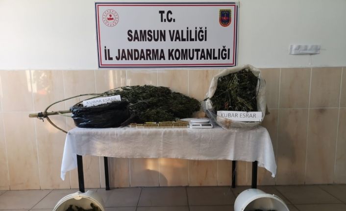 Samsun’un Alaçam ilçesinde jandarma ekiplerince esrar maddesi, tabanca, terazi ve fişek ele geçirildi.