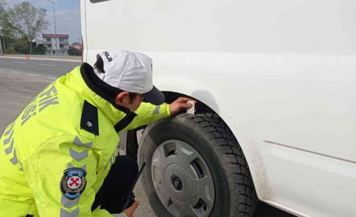 Samsun’un Alaçam ilçesinde polis ekiplerince kış lastiği uygulaması yapıldı.