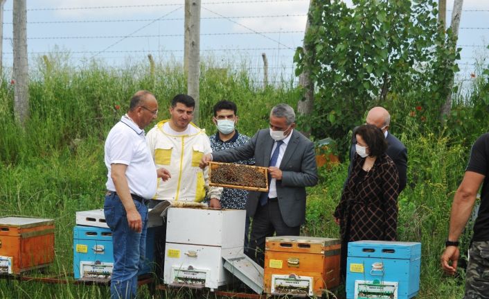Müdür İbrahim Sağlam yaptığı açıklamada, “Samsun ilimizde yaklaşık 80 bin kovan arı varlığımız var. Dolayısıyla arıcılarımızın Arı Yetiştiriciler Birliği ile beraber nelere ihtiyaçları olduğuyla ilgili taleplerini aldık. Bunların içerisinden en çok arılarda kendilerine lazım olan ana arılar. Bunların bölgeye adaptasyonu açısından hem de verimi daha yüksek olan ana arının üretimiyle ilgili Arı Yetiştiricileri Birliğimizle birlikte DOKAP’a bir proje sunduk 2016 yılı içerisinde. 2020 yılı içerisinde de bu projenin sözleşmesi imzalandı. Bugün gördüğünüz gibi ana arı üretimi başladı. Buradaki hedefimiz senede 3 dönem halinde üretim yapmak. Her dönemde bin ana arı ile birlik üyesi olan çiftçilerimize piyasa değerinden çok daha altında, sadece ana arı değil kolonini arılı kovanla birlikte satışlarını yapacaklar. Proje maliyetimiz 458 bin TL değerindeydi. Bunu 2 yıl içerisinde hem amorti eder hem 2 yıldan sonra kaliteli çalıştığında bol bal verebilen çeşitlerle, özellikle Kafkas çeşitleriyle ilgili üretimlerimiz devam eder” dedi.