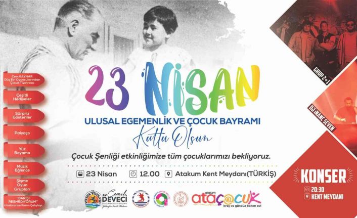 Türkiye Büyük Millet Meclisi’nin kuruluşunun 102. yıl dönümü olan 23 Nisan Ulusal Egemenlik ve Çocuk Bayramı, Atakum Belediyesi’nce dolu dolu kutlanacak. 2020 ve 2021 yıllarında koronavirüs önlemleri nedeniyle marşlar konvoyu, Ulusal Egemenlik Bandosu, site konserleri ve sokak sanatçılarının gösterileriyle kutlanan 23 Nisan Ulusal Egemenlik ve Çocuk Bayramı, bu defa Ondokuz Mayıs Üniversitesi (OMÜ), Atakum Kent Konseyi Çocuk Meclisi, Atakum Belediyesi AtaÇocuk Kreş ve Gündüz Bakımevi ile Özel Anaokulu ve Kreş Eğitimcileri Derneği (SAKED) iş birliği ile Atakum Kent Meydanı’nda (Emek Park) düzenlenlenecek etkinliklerle kutlanacak. Saat 12.00’de başlayacak kutlama programı 20.30’da gerçekleştirilecek iki konserin ardından son bulacak.