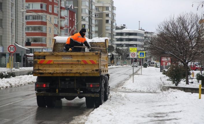 Sabahın ilk saatlerinde ise kent merkezinde yaya yoğunluğu yaşanan caddelerde kaldırım tuzlama ve kar küremesi çalışmaları gerçekleştiren ekipler, yaya kaldırımlarında yurttaşların kayıp düşme riskine karşı güvenli hale getirdi. Gündüz saatlerinde zaman zaman şiddetini artıran kar yağışının ardından buzlanma ihtimaline karşı solüsyon ve tuzlama çalışmalarının devam edeceği öğrenildi. Diğer yandan, Atakum Belediyesi Paylaşım Merkezi ekipleri de Çatalçam, Güzelyurt, Kamalı pazaryerlerinde pazaryeri esnafına ve sokaktaki yurttaşlara sıcak çorba ikramını sürdürdü.